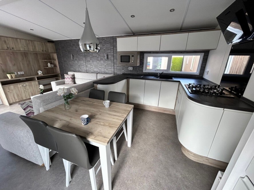 De keuken is voorzien van een magnetron, vaatwasser, koel-vriescombinatie en een 4-pits gaskookplaat, waterkoker en DolceGusto koffiezetapparaat. Alle keukengerei, bestek en servies is compleet en volledig aanwezig. Inclusief keukenlinnen.